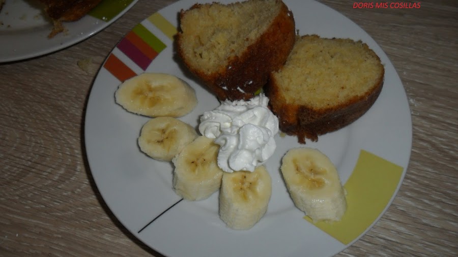 Como somos muy fruteros, le ha puesto plátanos a rodajas y nata (crema de leche).