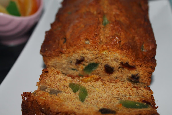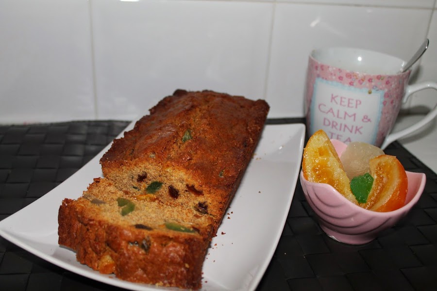Todo surgió poco después de pasar las Navidades, cuando en la despensa me miraba una bandejita de frutas escarchadas que habían sobrado de los roscones de Reyes. Cómo no sabía que hacer con ello, y como me vino la culpabilidad tan habitual después de los excesos navideños; busqué hacer algo que fuera más sano. Y de ahí surgió esta receta. En casa ha encantado. Obviamente, no es lo mismo que un bizcocho con harina de trigo normal, pero tiene un sabor delicioso.