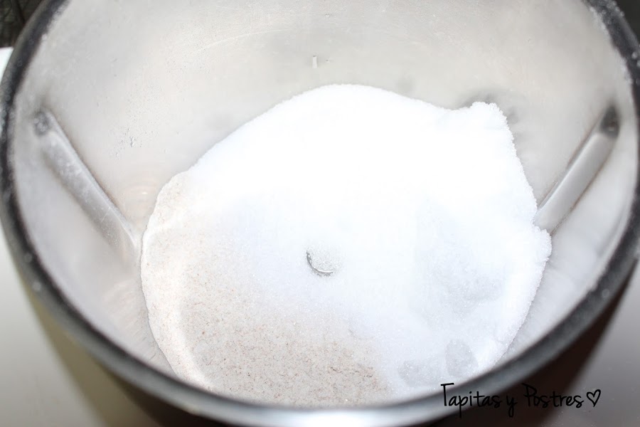 Primero vamos a tamizar la harina de espelta y el azucar de abedul juntas.