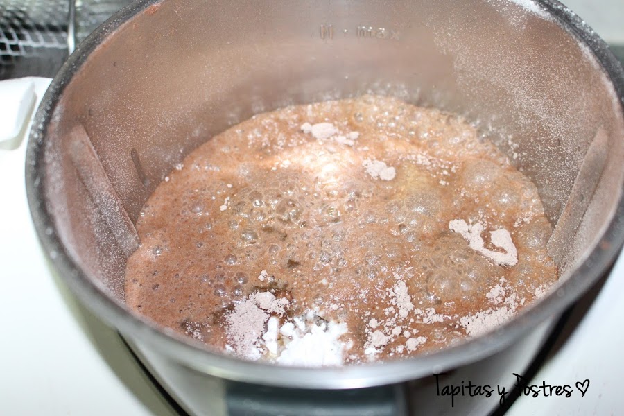 Incorporamos la leche, la levadura y el aceite y batimos bien 20 segundos a velocidad 4.
