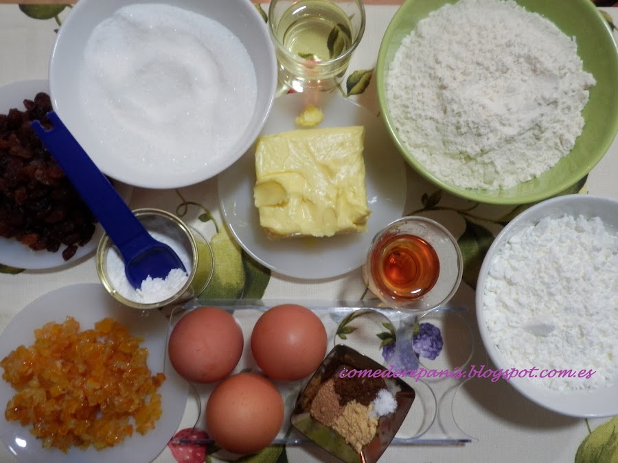 Era domingo por la tarde, el día había sido gris de invierno, las gotas de agua bajaban lentamente por los cristales de las ventanas y yo me preguntaba que podría ser apropiado para acompañar una tarde así al chocolate caliente que luego tomaríamos, pensé en hornear bollos, pero claro con este frío el tiempo de fermentación se ralentiza y no daría tiempo. Así que pensé en un cake clásico, y por supuesto delicioso, mi básico en los Plum-Cake así que a preparar los ingredientes a temperatura ambiente.