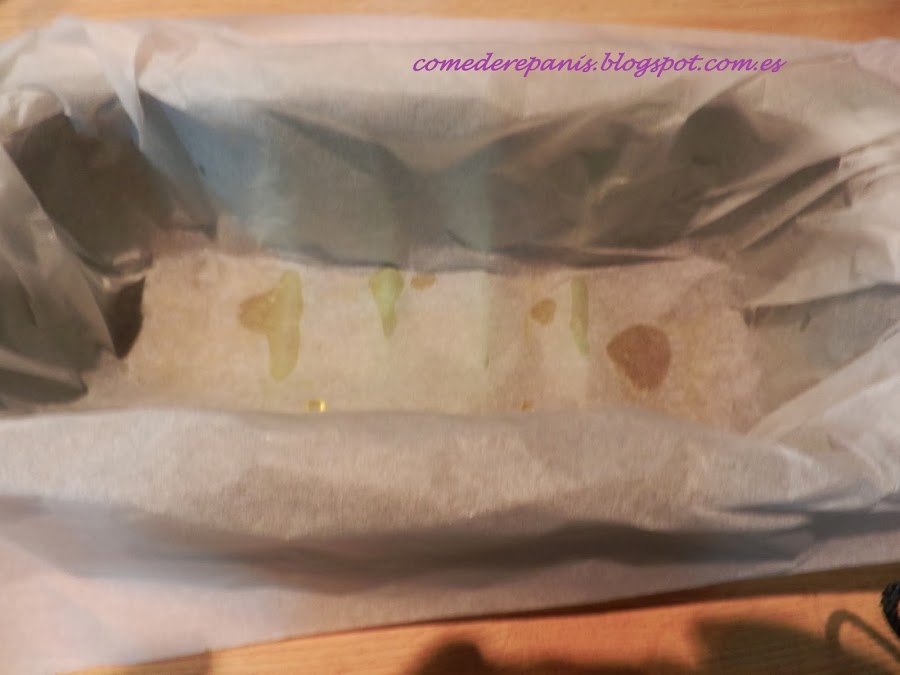 Comenzamos con la preparación del molde, primero untamos el molde con mantequilla o aceite en spray para moldes, y cubrimos el molde con papel de horno, el papel de horno evitará que se nos queme y de este modo nos será muy fácil desmoldar.