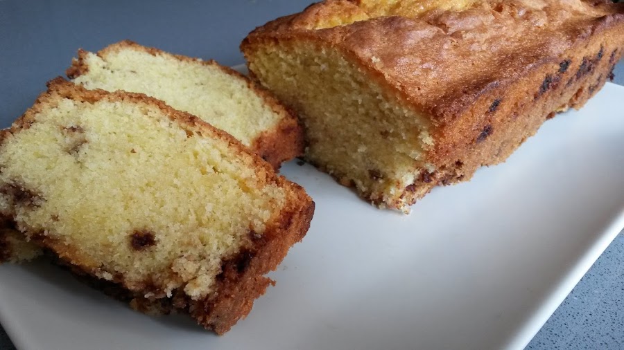 Plum cake con mantequilla salada y pepitas de chocolate: