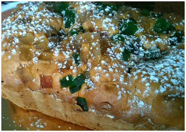 En esta ocasión he respetado la receta original y he utilizado fruta confitada verde y blanca para que quedase todo con un mismo tono