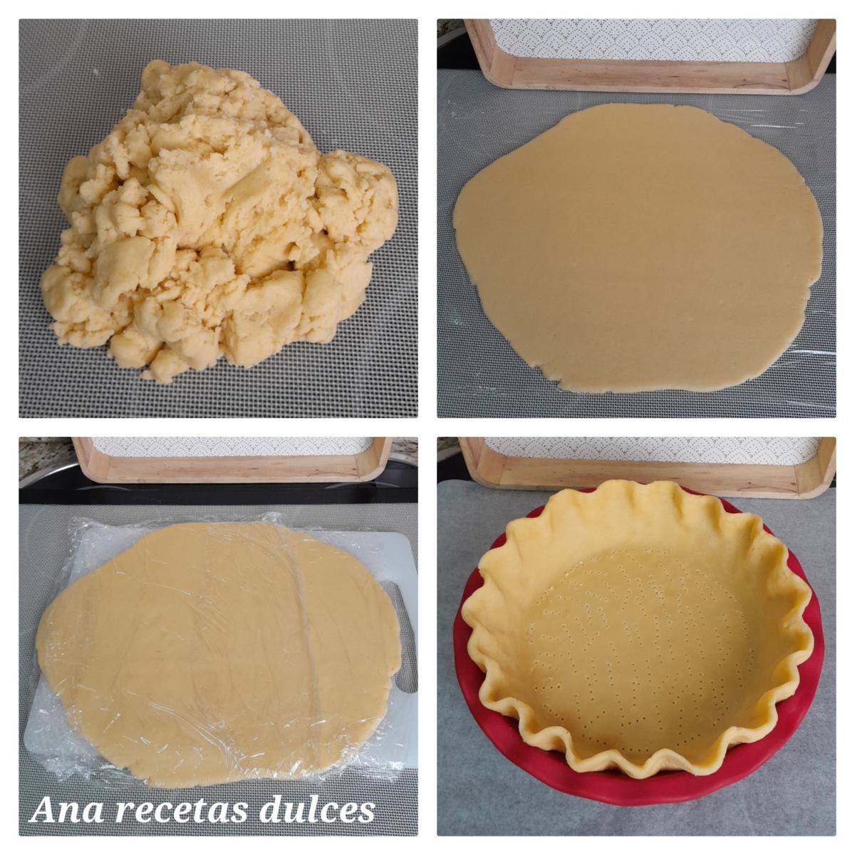 Con un rodillo estiramos la masa sobre la encimera enharinada (debera ser más grande que el molde).