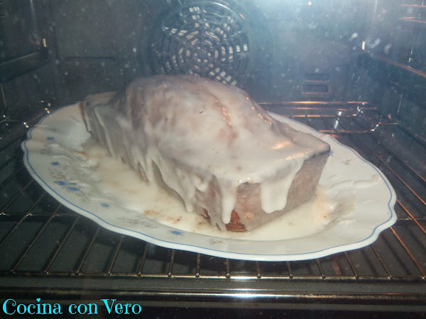 4/ Una vez echo esperamos a que enfríe y lo desmoldamos con ayuda de un cuchillo pasándolo a una fuente ó plato, calentamos un poco la glasa y se lo echamos por encima del plunk-cake pintándolo con una brocha de silicona por todos los lados.