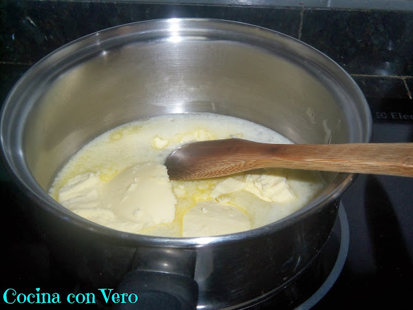 2/ En un cazo derretimos la manteca y una vez disuelta la reservamos para más adelante.