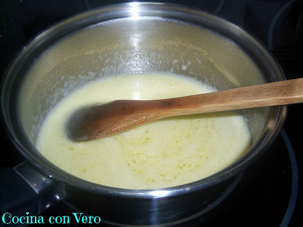 3/ A toda esa glasa la templamos un poco en el fuego, no pasándose de nuevo porque si no quedará aguado y lo que queremos conseguir es que nos quede espeso.