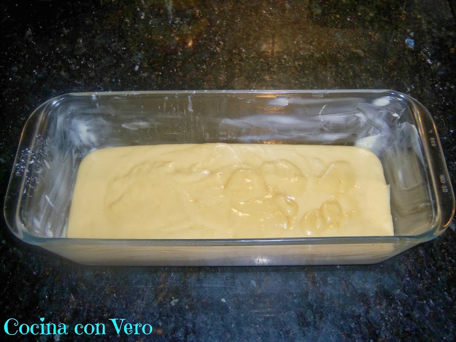 8/ Con una brocha de silicona ó cuchara la introducimos hacia el fondo de la masa moviéndola de arriba a bajo en línea recta para distribuirlo.