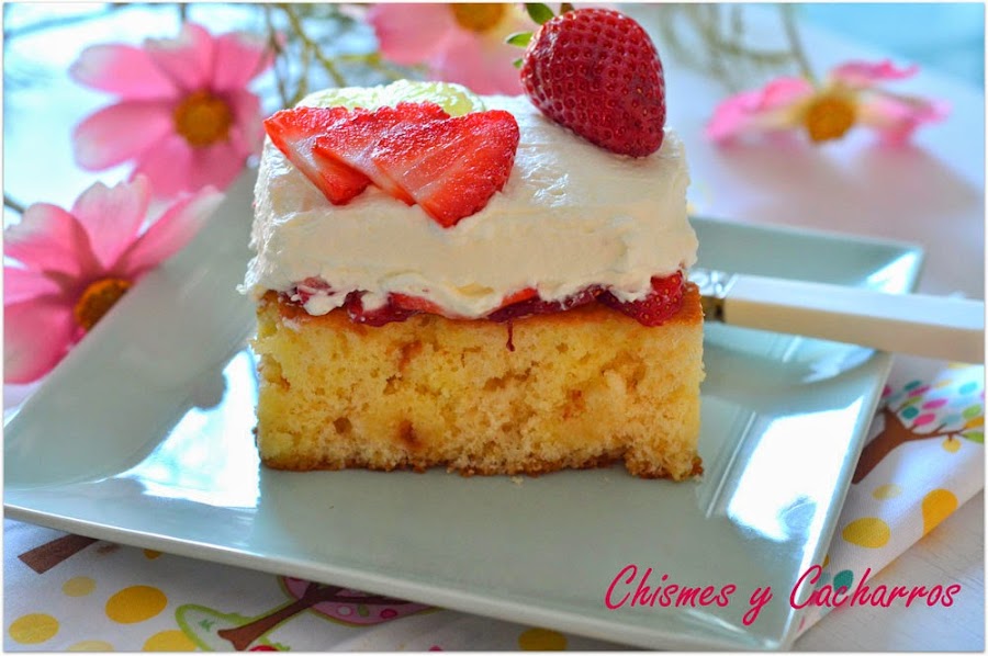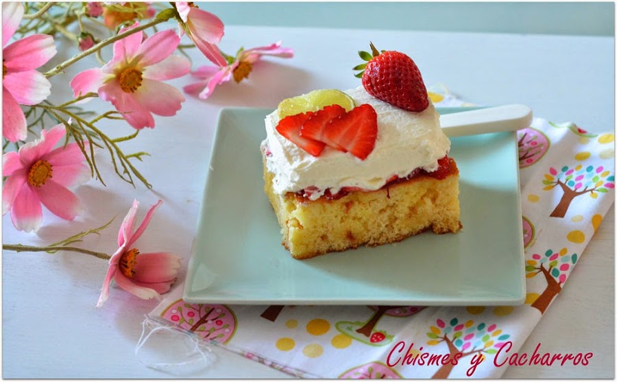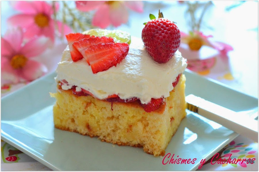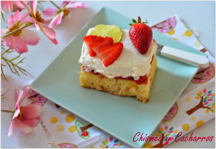El bizcocho ha quedado súper húmedo con la gelatina y muy pero que muy jugoso. El sabor lima-limón ha sido un acierto y la combinación con las fresas y la crema un lujazo. Un dulce que repetiré muchas más veces. Muy a tener en cuenta en cumpleaños y fiestas.