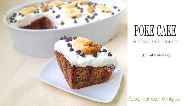 Poke Cake {Plátano, nueces y chocolate} - Chunky Monkey