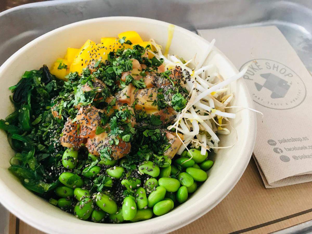 Poke Shop es un restaurante situado en el centro de Valencia, justo detrás de Correos de de la plaza del Ayuntamiento, concretamente en la calle Perez Pujol 10. Lo que se ofrece son Pokés, una especie de ensalada con una combinación de verdura, arroz y pescado o tofú marinado. El Poké es una comida que se puso de moda hace años en la costa este de los Estados Unidos pero que es originaria de las islas de Hawaii.