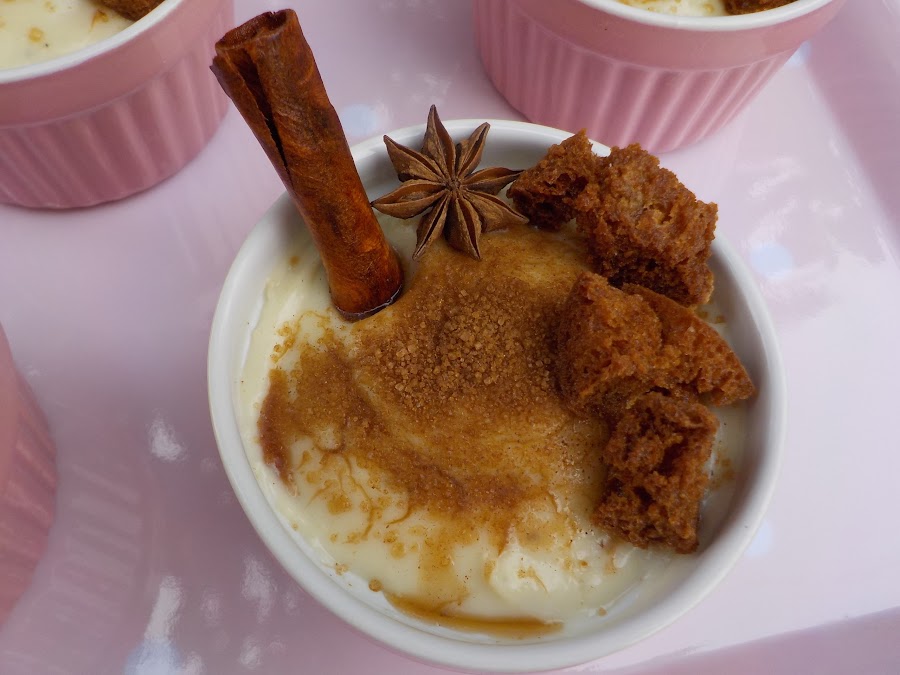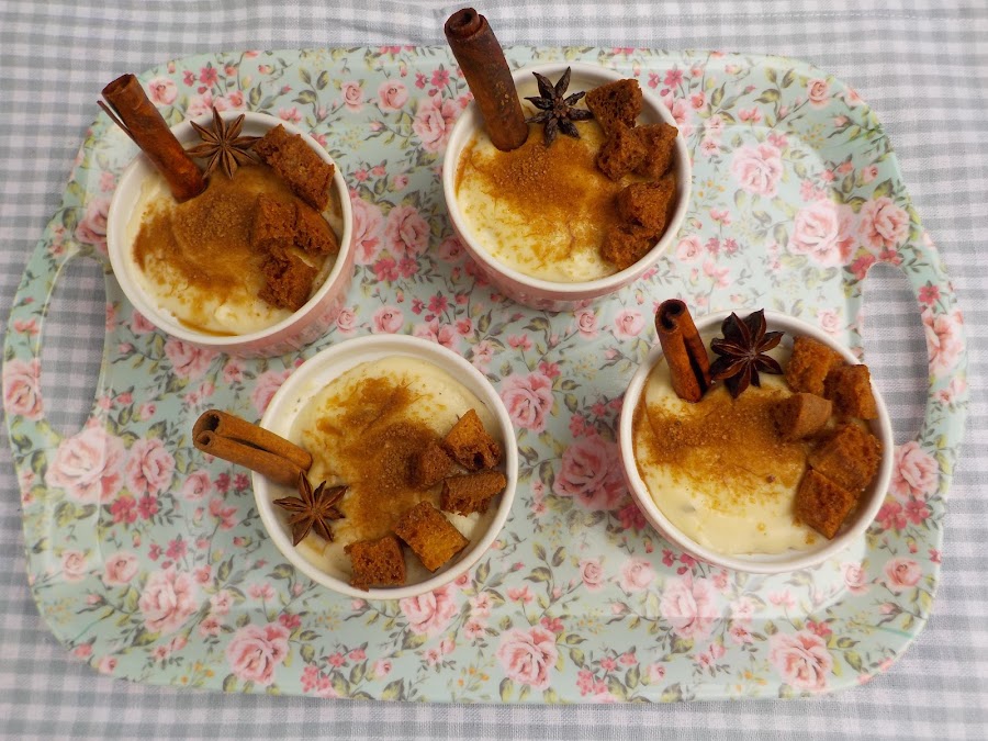 Servir en boles individuales y decorar con los picatostes, y espolvorear con la mezcla de azúcar moreno y la canela .También podéis añadir a la decoración un palito de canela y una estrella de anís.