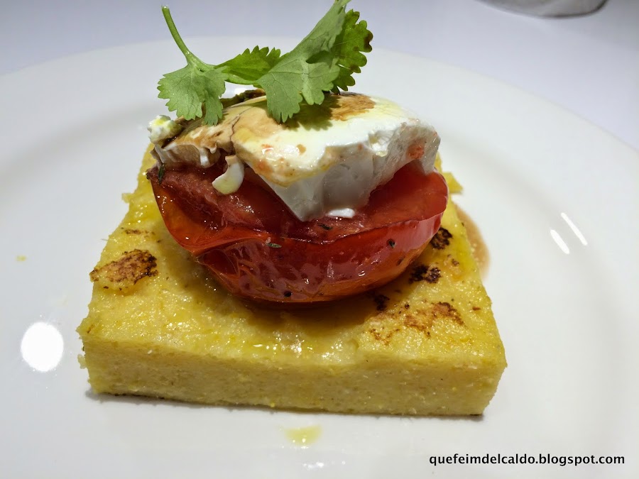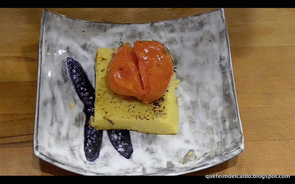 Esta vez hemos acabado la polenta con un tomate asado y un poco de queso Filadelfia.