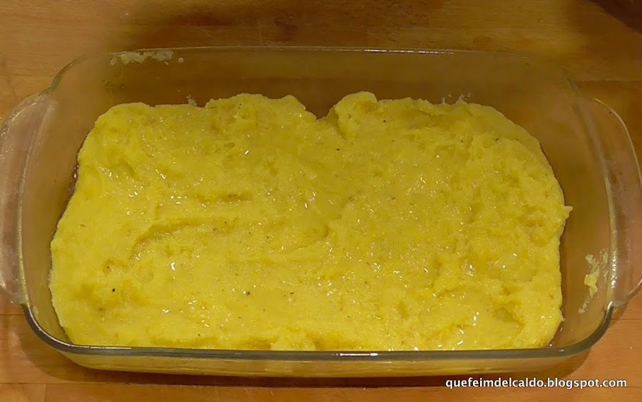 Extendemos la polenta para así refrescarla, la introducimos a la nevera durante 1 hora aproximadamente para que solidifique.