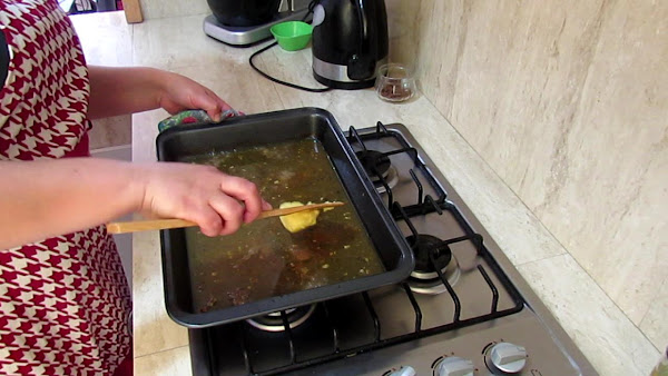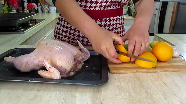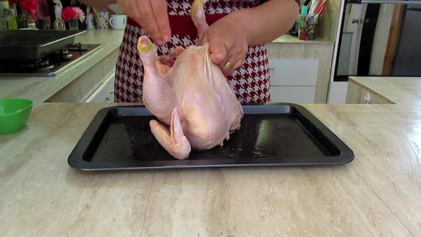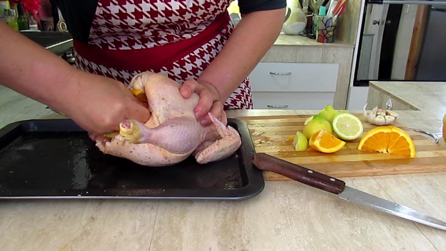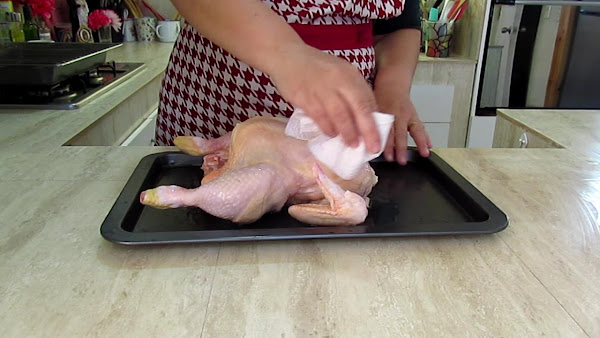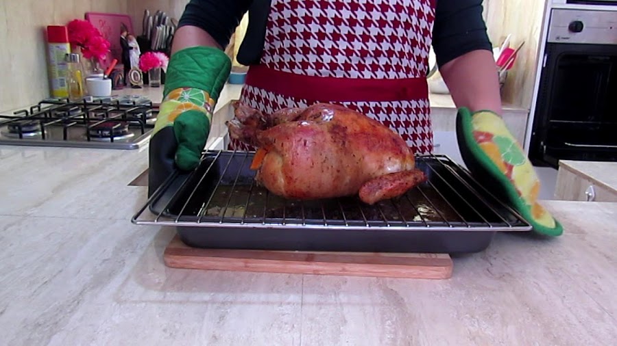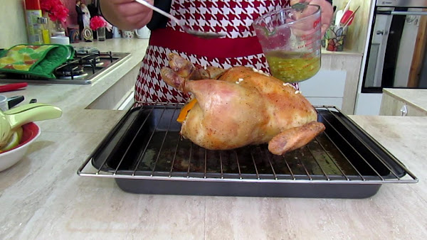 una vez pasada la hora sacamos el pollo y lo bañamos