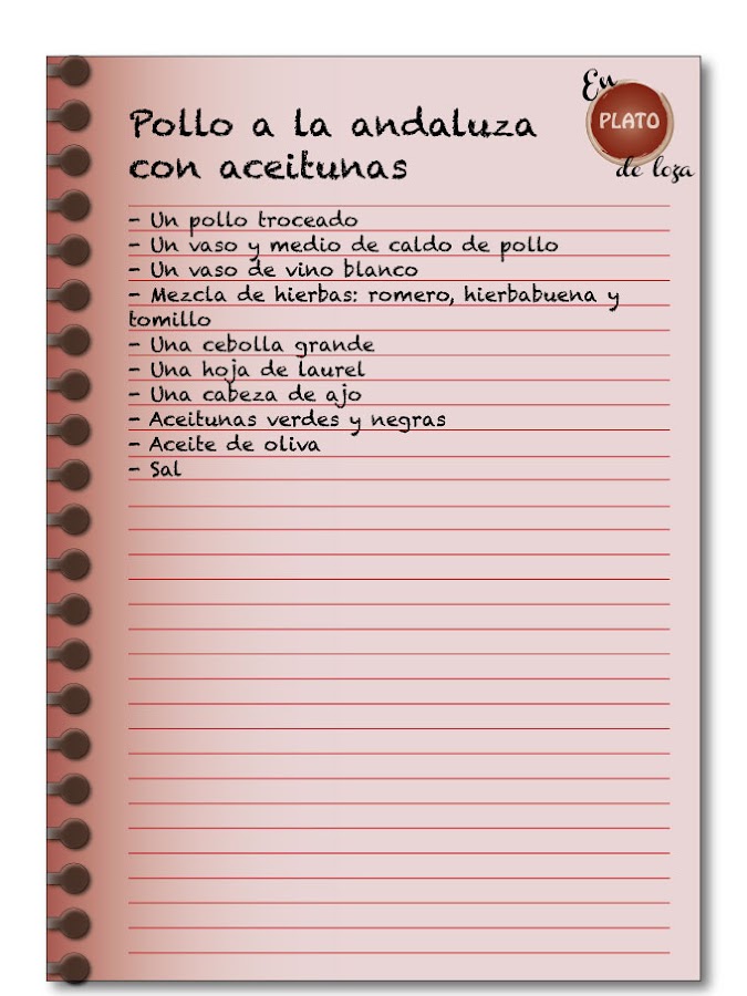 Tradicional y con protagonismo del pollo. Me costó elegir porque, como digo, lo preparo de bastantes formas, tradicionales y más modernitos (aunque éstas últimos no valían) y al final me decidí por este pollo a la andaluza donde las aceitunas y una cuidada mezcla de especias le dan un sabor muy especial, muy de aquí, con un recuerdo especiado al pasado andalusí de mi tierra.