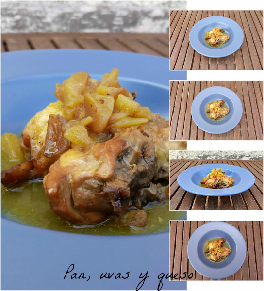 La receta de Blinky lleva uvas pasas, una de las cosas que menos me gustan en el mundo, jajaja. Ni tenía, ni pensaba comprarlas, así que pensé que sería una buena idea utilizar manzana en su lugar. Y, dicho y hecho. Es por eso que he bautizado esta receta como "pollo a la asturiana" porque la sidra y las manzanas forman parte de la gastronomía asturiana como la fabada, el cachopo y otras delicias.