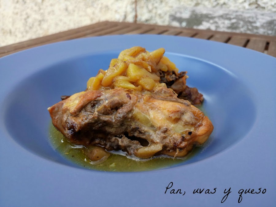 Mi primera opción fue el pollo a la sidra pero no tenía ninguna botella en casa y comprar una para utilizar un poco...no era buena idea. Así que decidí preparar el bizcocho de turrón. Pero a veces las cosas cambian y por arte de birlibirloque llegó a casa una botella de sidra achampanada y a mi marido le apeteció tomarse una copa, así que decidí que iba a preparar el pollo con ella.