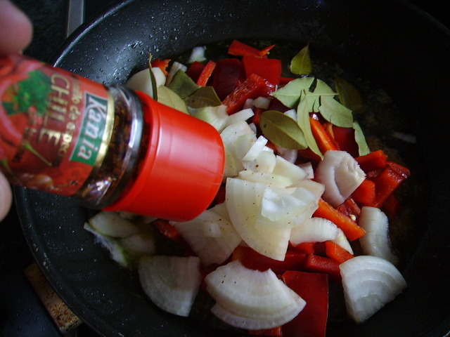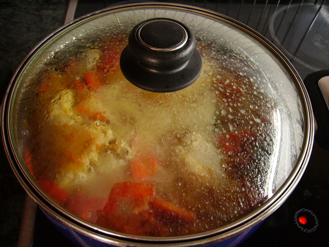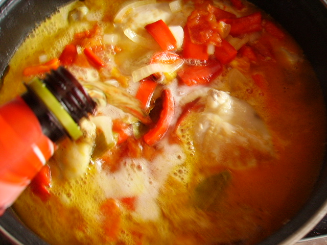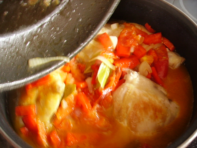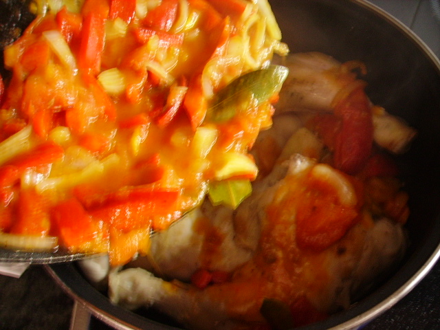 3.- Añadir la verdura al pollo, echar el tomillo, la cayena, el romero, la cerveza.+ 3.000€