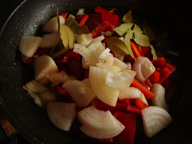 2.- Trocear toda la verdura y pochar en el mismo aceite del pollo. + 3.000€