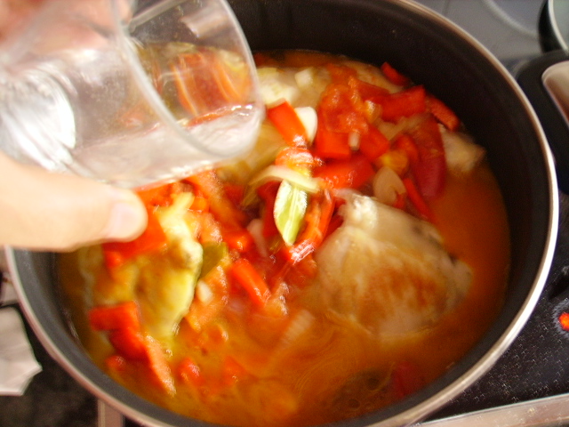 4.- Cubrir con agua, rectificar de sal, añadir una cucharadita de pimentón.+3.000€