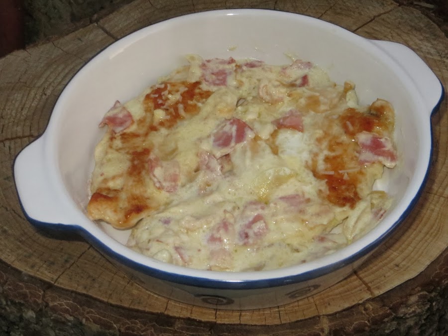 Esperamos que la nata (crema de leche) se reduzca un poco y se espese y echamos en la sartén los filetes que ya tendremos cocinados previamente, justo antes de sacarlos le añadimos un poco de queso rallado y listo para comer.