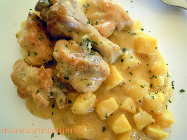 Lo mejor del pollo es que está bueno lo hagas como lo hagas y da para infinidad de recetas. Esta que he hecho hoy la he sacado del libro de "Las recetas de Sor Lucía Caram" que gané en Canal Cocina y del que ya os he puesto alguna receta como el arroz caldoso de costilla y el pan perdido de canela.