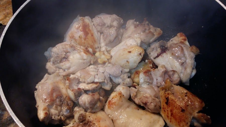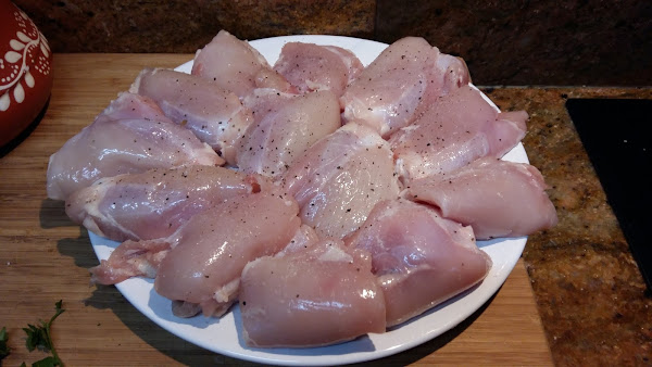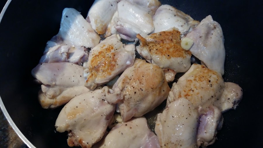 Empezar salpimentado los trozos de pollo.