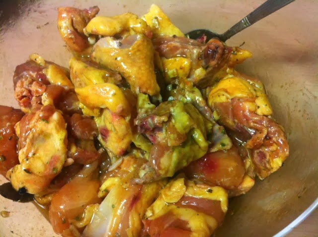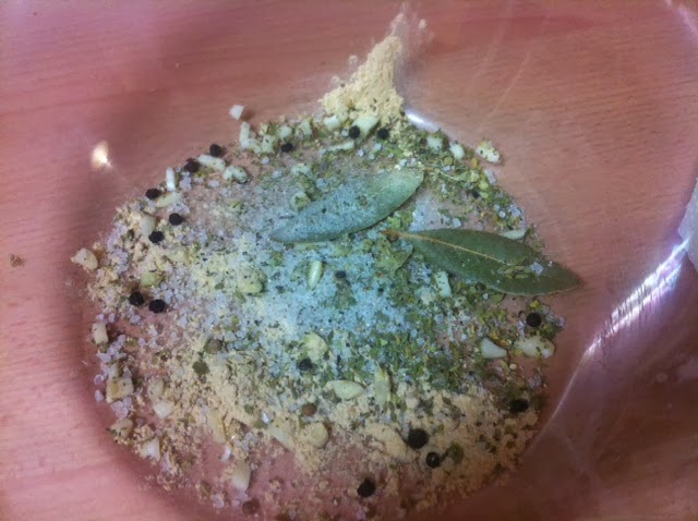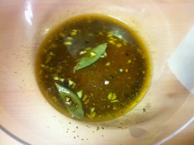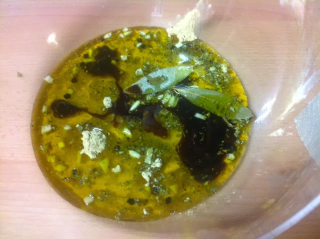 Si tenéis tiempo y ganas de poner a macerar el pollo, tenéis que poner en un bol 10 cucharadas de aceite de oliva aproximadamente, 2 cucharadas de soja, 2 dientes de ajo picados, 2 hojas de laurel pequeñas, 1 cucharadita de orégano seco y otra de jengibre molido.