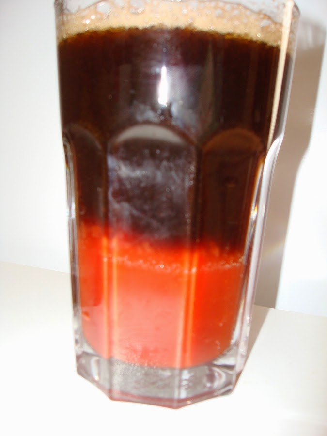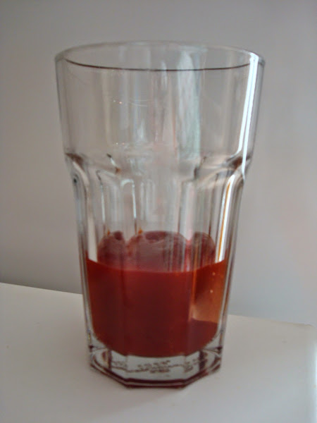 Después en un vaso echamos 3-4 dedos de ketchup y llenamos el vaso de coca-cola y removemos.