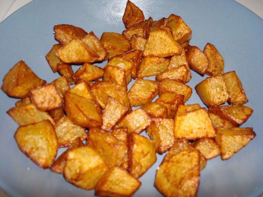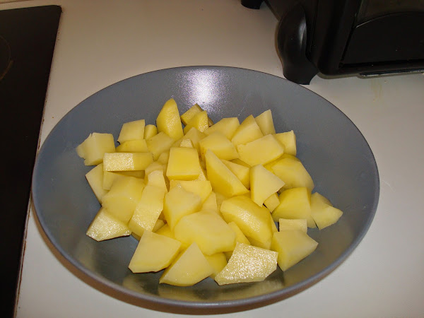 Mientras se va haciendo pelamos las patatas las partimos en daditos o como queráis y las freímos de acompañamiento.
