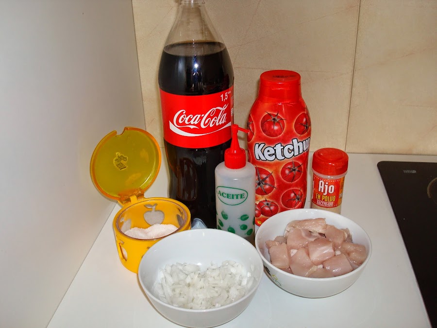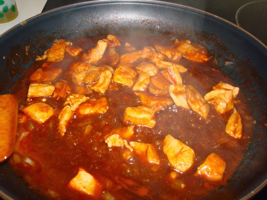 Vertemos el contenido del vaso en la sartén y llevamos a fuego lento durante 15-20 minutos.Probar el caldo por si esta muy dulce añadir un poco de sal y si queréis mas salsa para mojar echad un poco más de coca-cola.