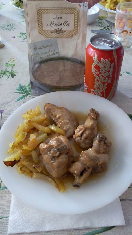 Muslos y alas de pollo (según los que seais, para 6 yo pongo 12 muslos y 2 ó 3 alas).