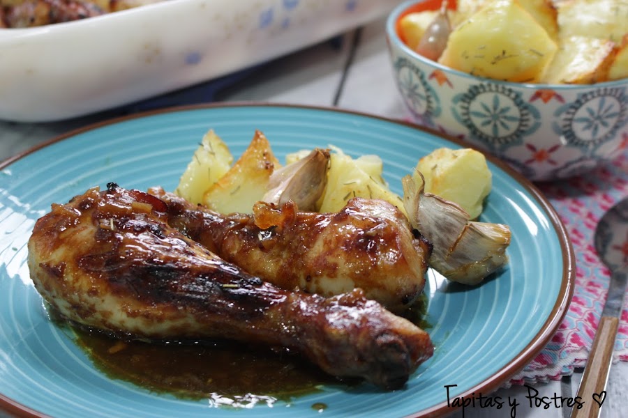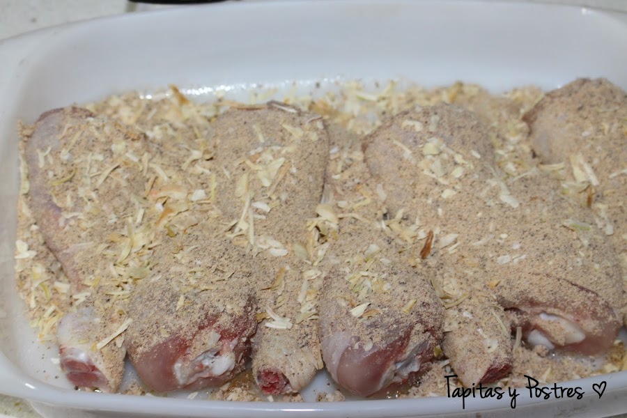 Yo lo he hecho con jamoncitos, pero podeís usar muslos, contramuslos, alitas o incluso costillas. En ese caso deberéis vigilar el tiempo de horno, ya no sé deciros cuanto tiempo tarda en hacerse.