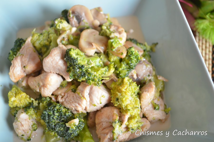 El brócoli queda cocido pero durito. Si te gusta más hecho dejar rehogar más tiempo con los champiñones.