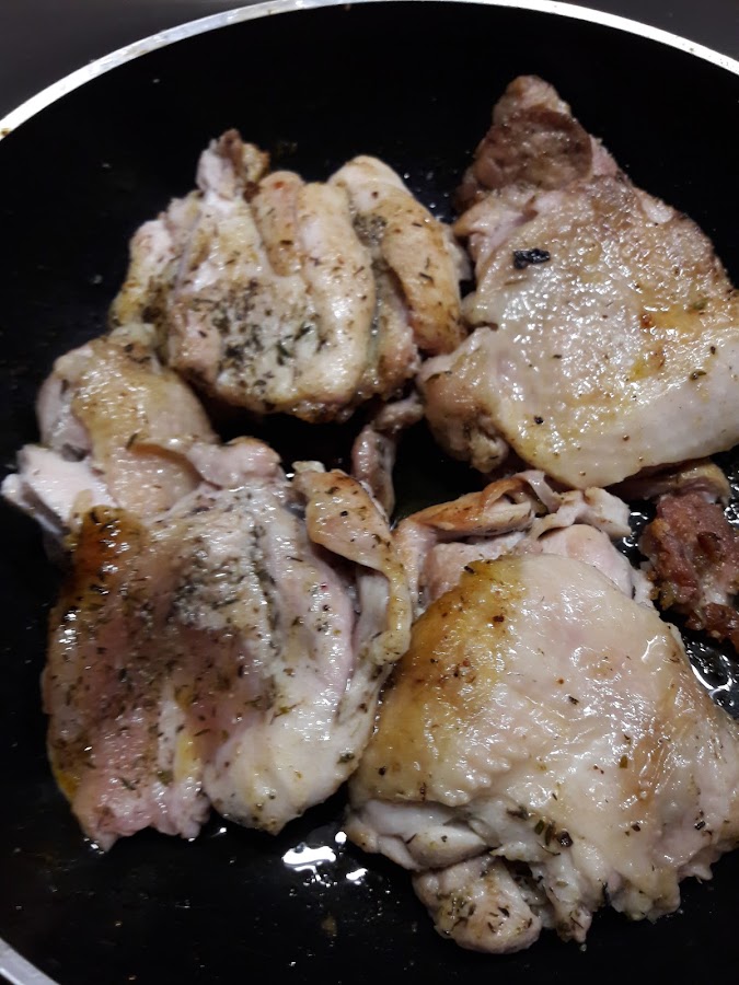 Usamos una cazuela normal, ponemos el aceite, calentamos bien, doramos el pollo y lo sacamos a un plato, reservamos.