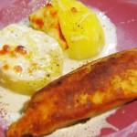Se presenta con patatas (asadas o en puré), verduras al horno o ambas cosas.