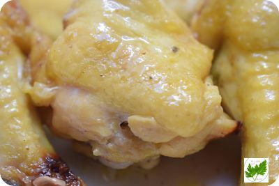 Pon el pollo en un bol. Salpimenta. Exprime el limón por encima de él. Añade los dientes de ajo laminados y la miel. Remueve bien para que se impregenen todos los muslitos de pollo. Deja macerando un par de horas tapado con papel film y dentro del frigoríco.