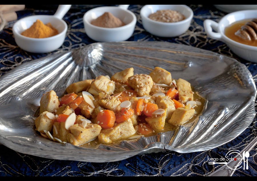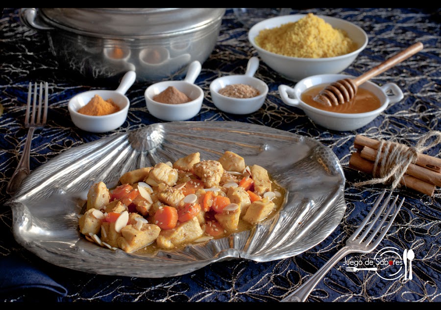Reservamos los pollos de corral que cría nuestro hermano para las grandes ocasiones. Después de convivir tantos meses en casa son como de la familia, pero no se libran del sacrificio. En el día a día también comemos pollos pero proceden de granjas desconocidas y con unas carnes que hay que mejorar como sea cuando pasan por la cocina. En su día hicimos un “Pollo ala moruna”, que gustó. La propuesta de hoy va más o menos en la misma dirección: pollo a la miel con cuscús. Si sois viajeros y habéis recorrido algún país del Magreb seguro que este pollo os recordará sabores que habréis experimentado. Si lo que os atrae es el lejano Oriente podéis sustituir el cuscús por un arroz basmati, por ejemplo. Con un acompañamiento u otro, el guiso es fácil, sencillo y barato. Lanzaos a la aventura.