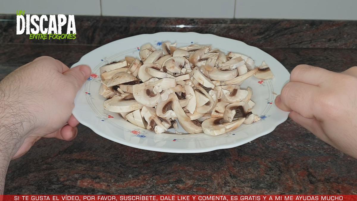 5Ahora, mientras se va pochando la verdura, vamos a cortar unos champiñones en láminas.