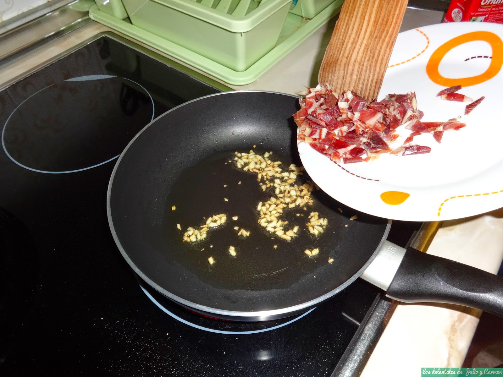 100 gr de jamón serrano partido en trozos pequeños o en tacos