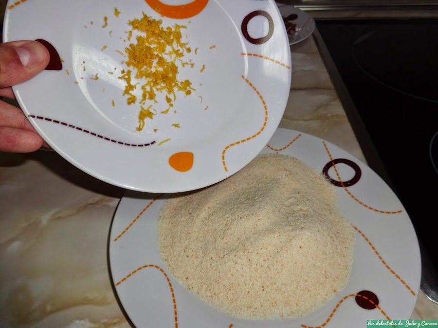 En un plato, rallaremos el medio limón y lo mezclaremos con pan rallado, moviendolo para que se distribuya bien la ralladura.