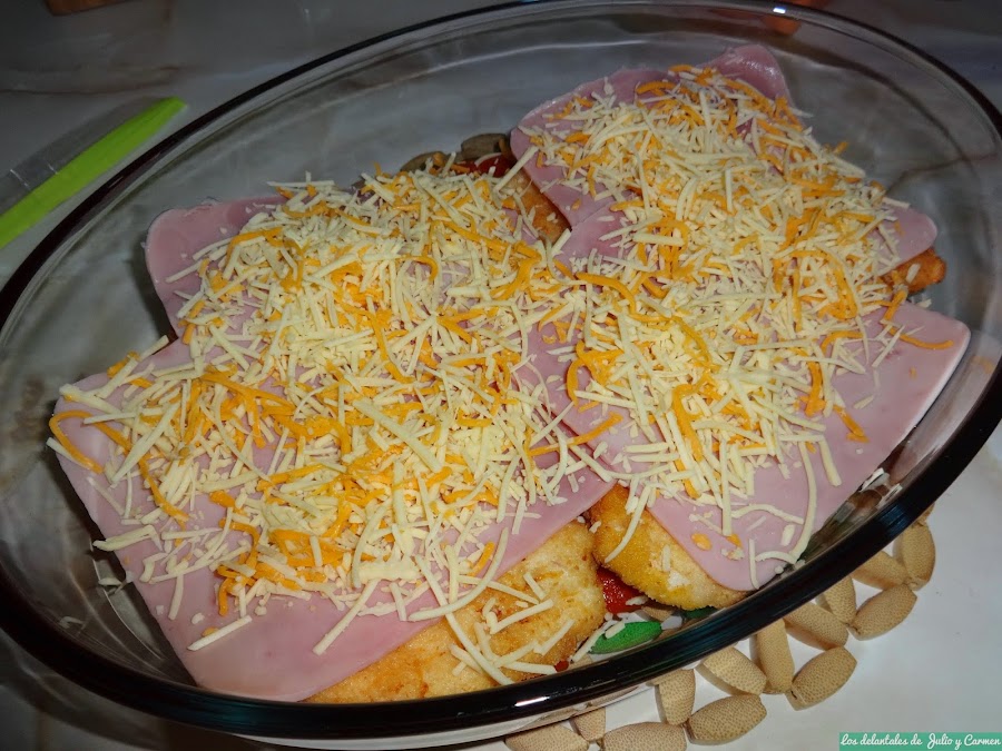 No recuerdo exactamente de donde cogimos la receta de este pollo a la milanesa, pero he de reconocer que fue todo un acierto el fijarnos en dicha receta. Fácil, con ingredientes que todos tenemos y con una presentación y un sabor muy muy característico. Comida ideal para hacer en cualquier momento, tanto para niños como para mayores, y que acompañado de una buena ensalada o patatas, convertirán la comida en un verdadero lujo. Imaginaros: un filete de pollo rebozado con un toque cítrico, acompañado de una salsa de tomate con jamón y al horno para gratinar un poco de queso y jamón de york. ¿No se os hace la boca agua? A nosotros si, con solo pensarlo...