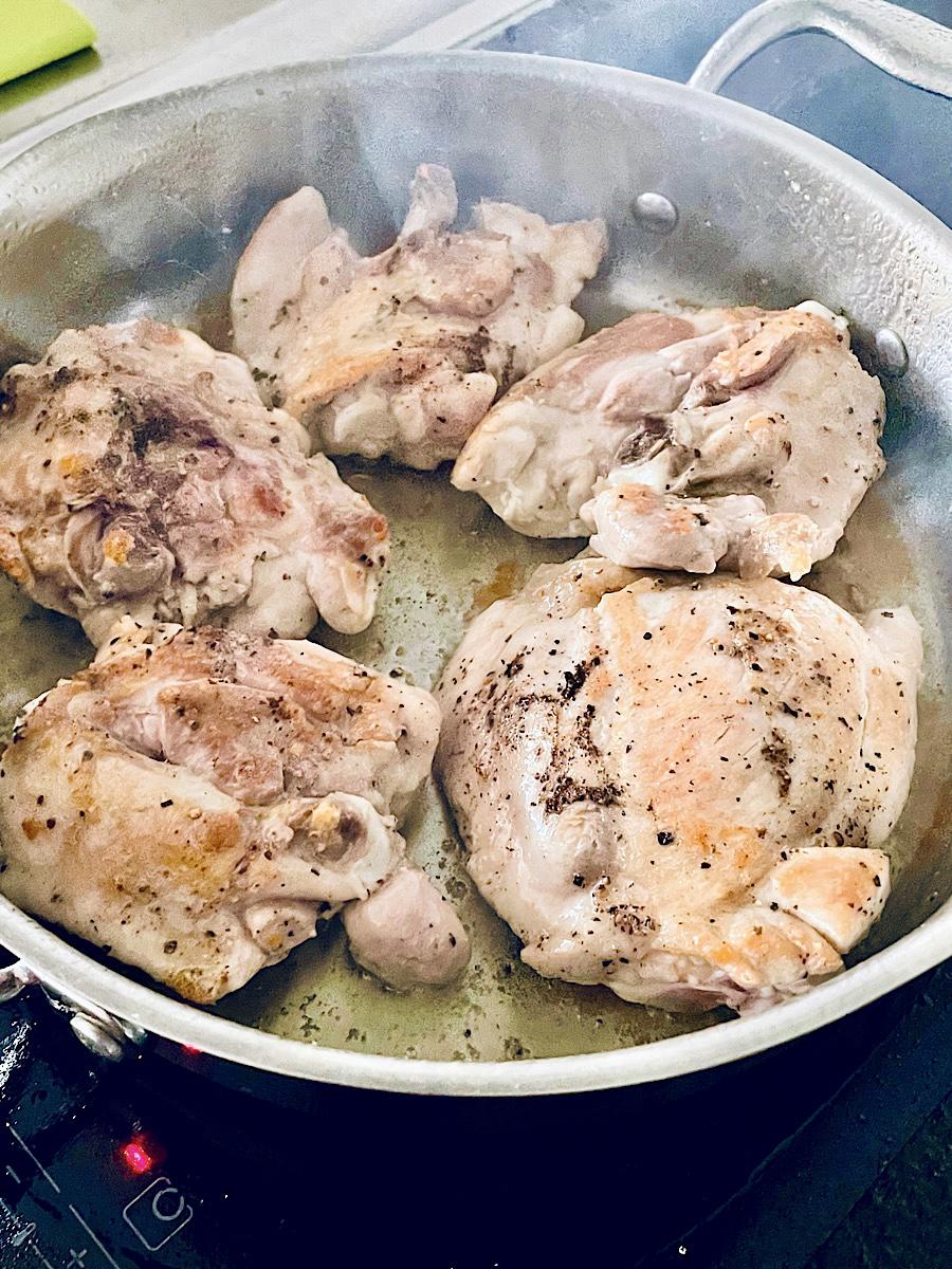 800 gr contramuslos de pollo (yo usé sin piel porque era lo que tenía) puedes usar contramuslos deshuesados, pechugas o piezas de pollo