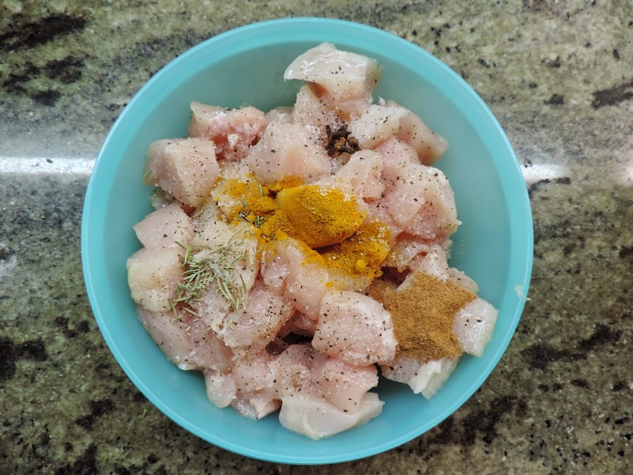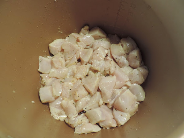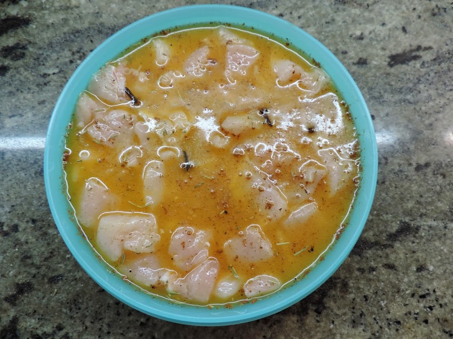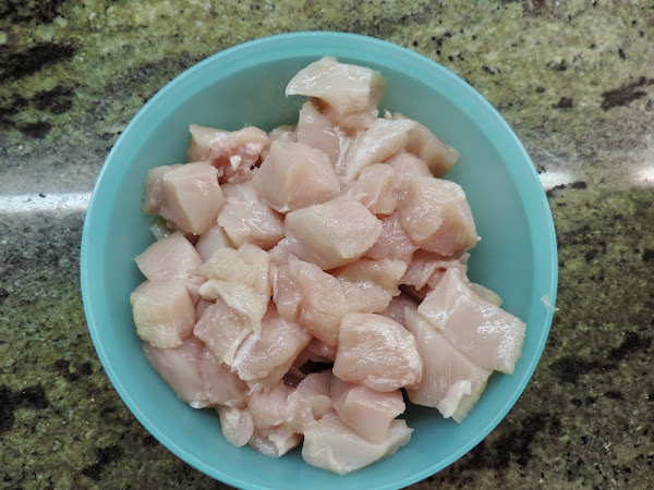 Cortamos la pechuga en dados y los ponemos en un táper.