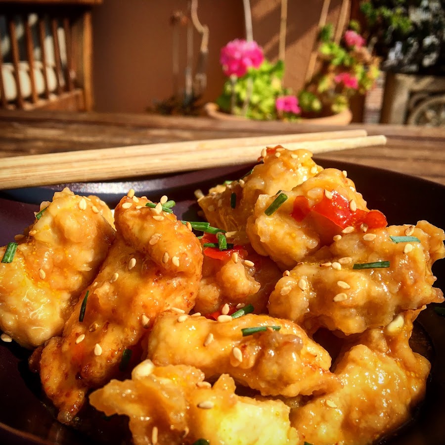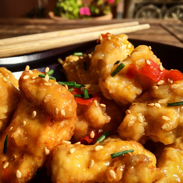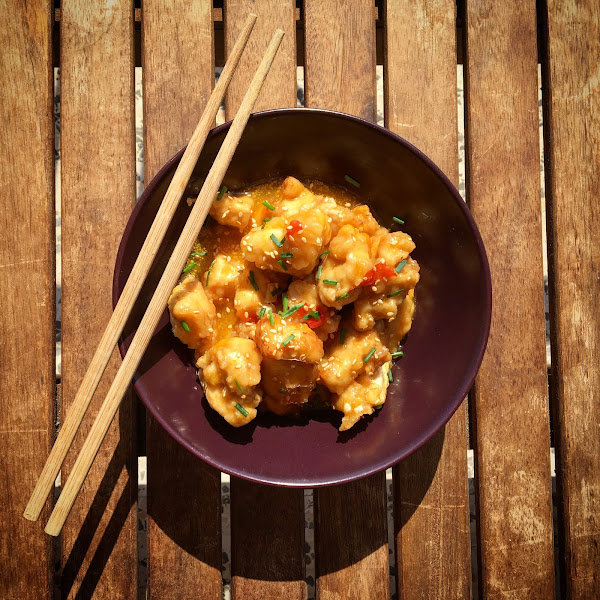 Una vez en el plato podemos esparcir por encima del pollo unas semillas de sésamo y un poco de cebollino picado. Le dará un toque de color y de sabor inmejorables.