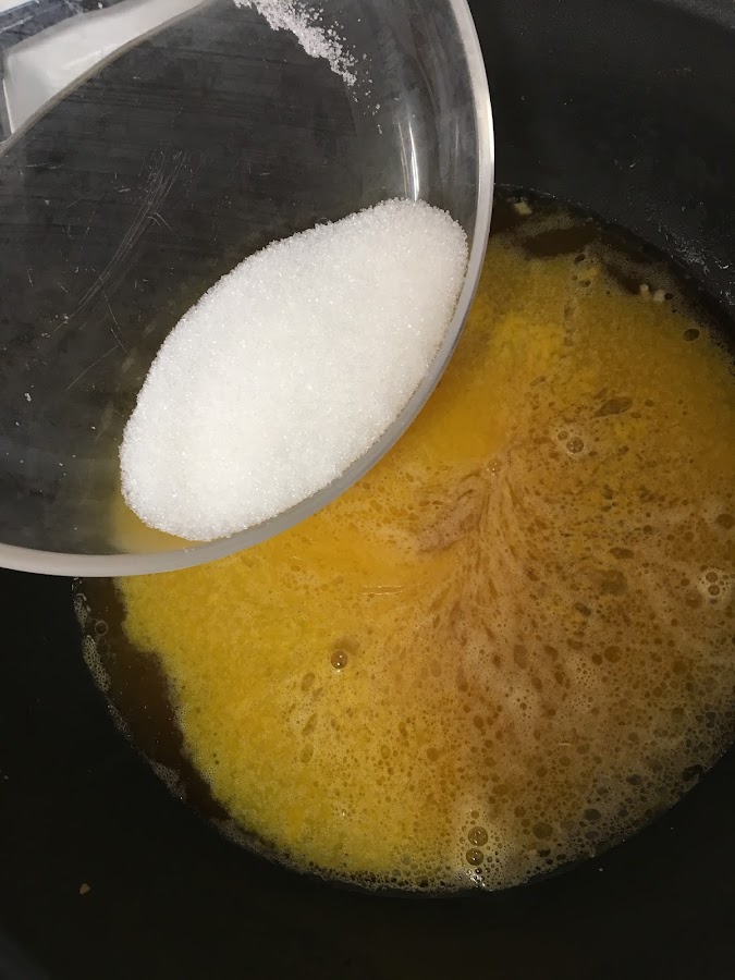 Acto seguido le añadimos una cucharada grande de salsa de soja y las 4 cucharadas de azúcar.