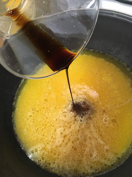 Debemos llegar a conseguir que la salsa se espese. (Opcionalemente podemos añadirle unas ralladuras de piel de naranja. Yo no lo hice, pero si quereis podeis hacerlo).