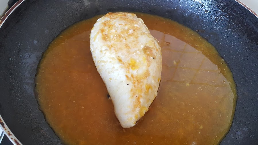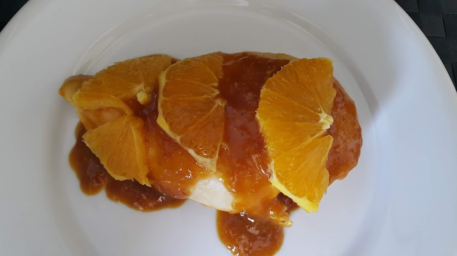 Y éste sería el resultado. Un pechuga de pollo con una salsa dulce con toques cítricos.
